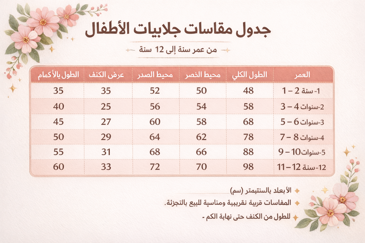القياسات للبنت