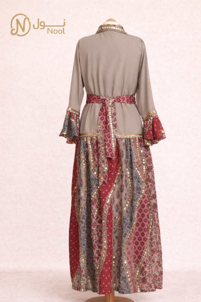 جلابية نسائية المرايا هي تصميم فريد من نوعه يجمع بين القماش الكريب الناعم مع حزام خارجي يزين الخصر، إضافة إلى الطباعة الديجيتال الجميلة بمرايا لتعكس لمسة تقليدية عصرية. مناسب للسيدات اللواتي يبحثن عن إطلالة أنيقة ومميزة.